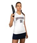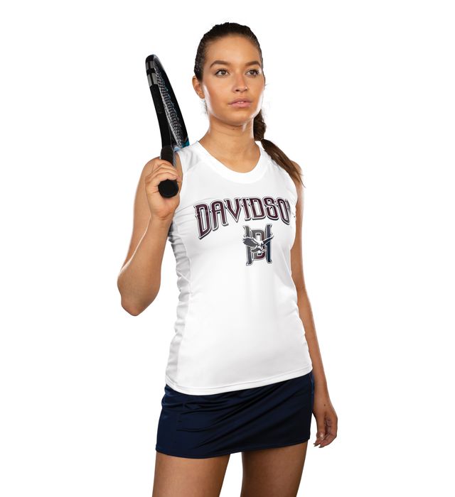 The 4-way stretch properties of the fabric allow for increased mobility, making it ideal for various sports such as field hockey, lacrosse, tennis, track, and training. The tank's moisture-wicking capability keeps you dry and comfortable. It features a ladies' fit, tagless label, racerback styling, and is designed to be NFHS compliant for lacrosse and field hockey (except for the Graphite/White color).