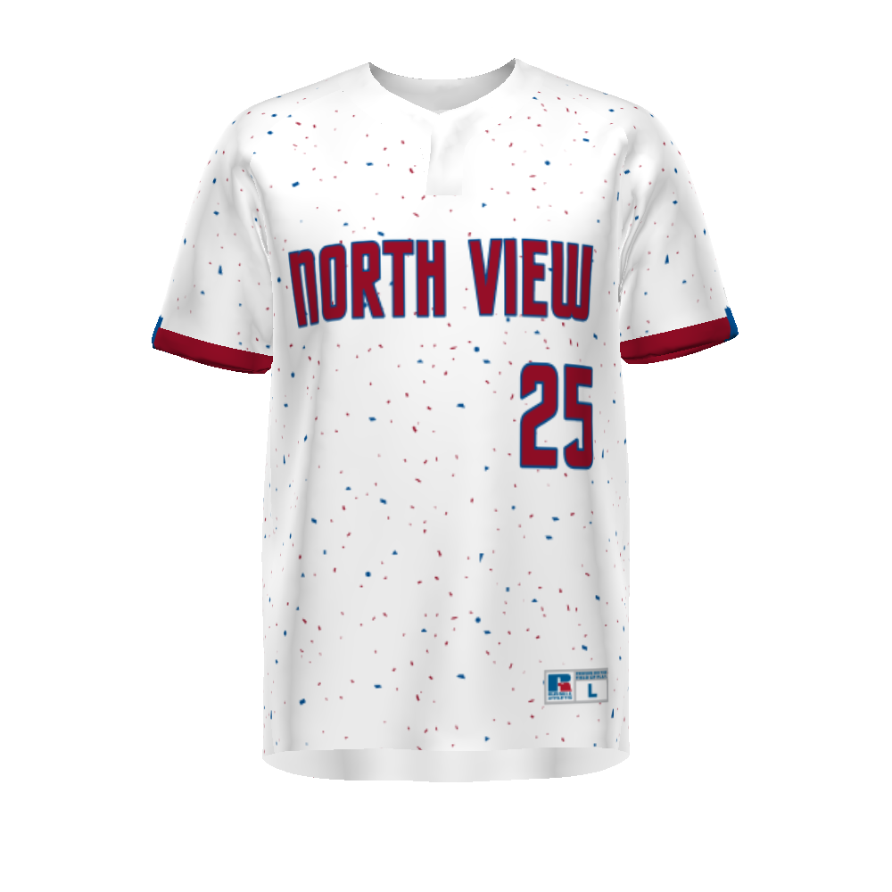 Built for mobility, this sublimated two-button jersey combines four-way stretch with mesh ventilation and UPF protection.