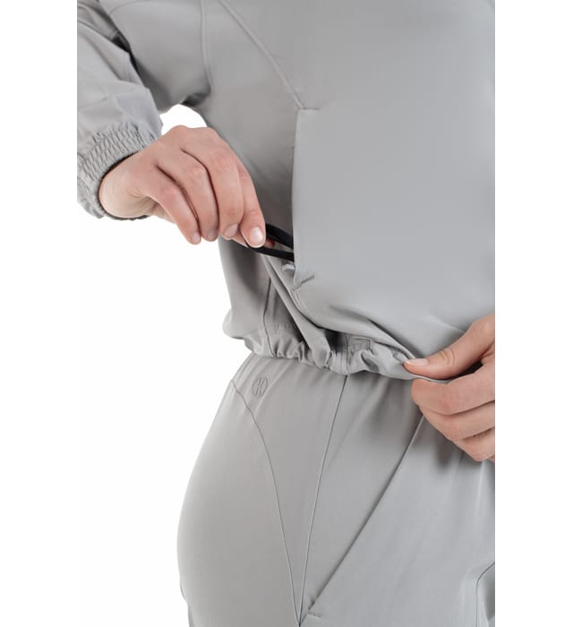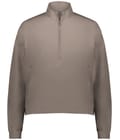 Eco-Revive® product featuring 89% recycled polyester/11% spandex 4-way stretch properties allow for increased mobility Ladies' fit Tag-free label Half-zip pullover style Set-in sleeves Side zippered pouch pocket with hidden cell phone pocket Elastic cuffs Open bottom hem with drawcord adjustment, access located in right side of pocket Modest cropped length Made from Eco-Revive® pullover features recycled polyester/spandex stretch fabric in a ladies’ fit with a modest cropped length. A half-zip front, adjustable drawcord hem, and zippered pouch pocket with hidden phone storage provide secure, functional wear.