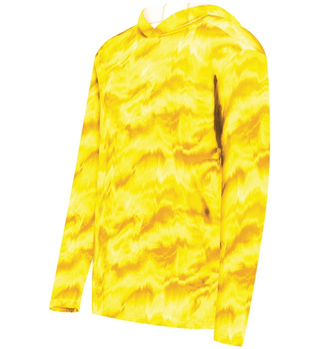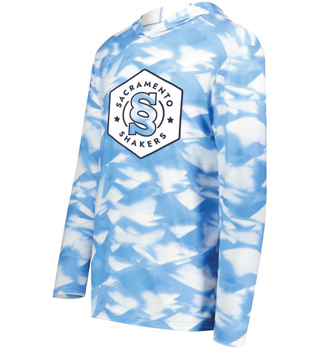 5.6 ounce 95% polyester/5% spandex wicking knit Fully sublimated design Because of the manufacturing process of the fabric and garment each hoodie will be unique Garment protects against the sun with 50+ UPF Wicks moisture Odor resistant Tagless label 3 panel hood Set-in sleeves