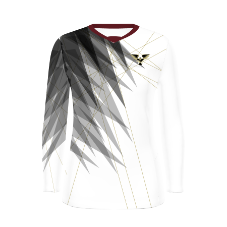 87% polyester/13% spandex with Coolcore® fabric technology 92% polyester/8% spandex mesh shoulder & back inserts with Coolcore® fabric technology 4-way stretch properties allow for increased mobility Garment protects against the sun with 50+ UPF Wicks moisture Ladies' fit Tagless label Two piece collar Set-in sleeves Built for high-intensity team play, this long sleeve ladies' jersey offers breathable coverage, moisture control, and four-way stretch for unrestricted movement. FreeStyle Sublimation lets you create a custom look with the most vibrant colors that stand the test of time wash after wash!