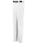 The elastic waistband with tunnel belt loops, a two-snap closure, and a zipper fly ensure a secure fit during play. Set-in double welt back pockets provide convenient storage for essentials, while the double-stitched crotch gusset and reinforced knees amplify durability. The open bottom boot cut design aligns with the modern athletic aesthetic, making these pants a practical and stylish choice for school and recreational baseball teams.