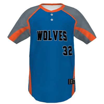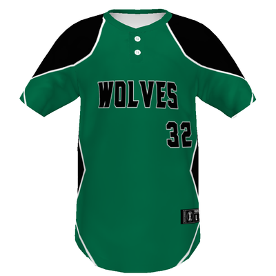 Moisture-wicking pin-dot mesh and a ventilated back keep this custom two-button jersey cool during gameplay.